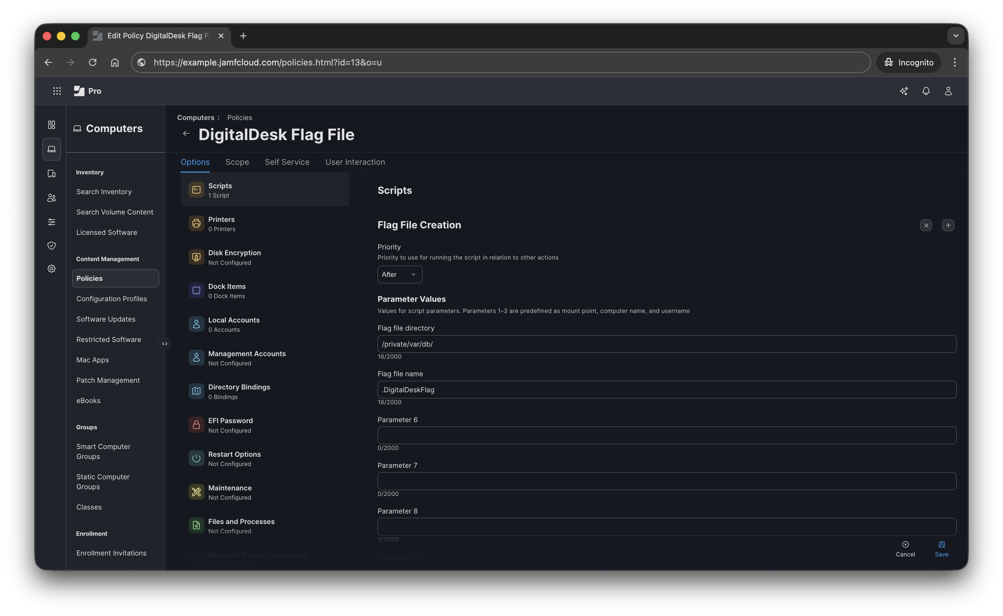 When you come to deploy this script in a policy you’ll need to specify the absolute path of the directory, and the file name.