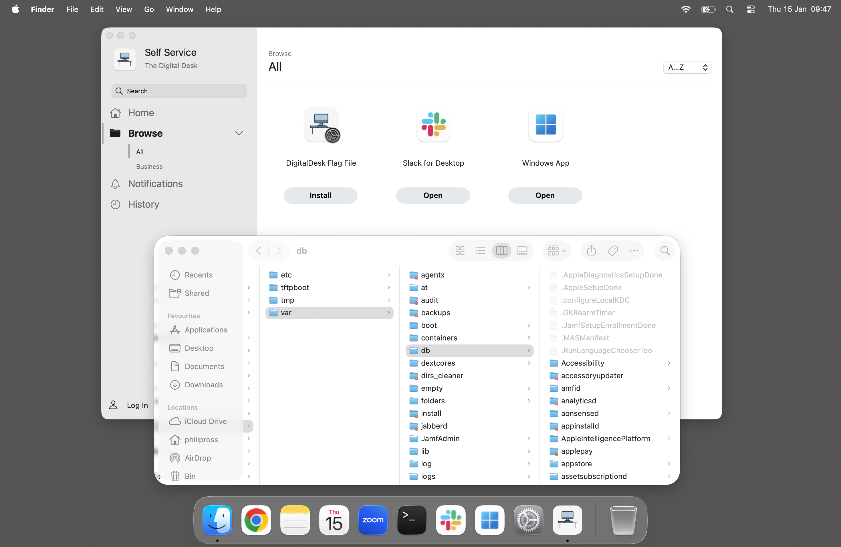Device Management Systems (DMS) often combine the use of the MDM/DDM channel provided by Apple with a separate, sometimes proprietary mechanism to deliver components outside of these channels. With Jamf Pro, configuration profiles or blueprints are delivered over the MDM/DDM channels, whereas policies and (some) inventory information is orchestrated by the jamf binary.